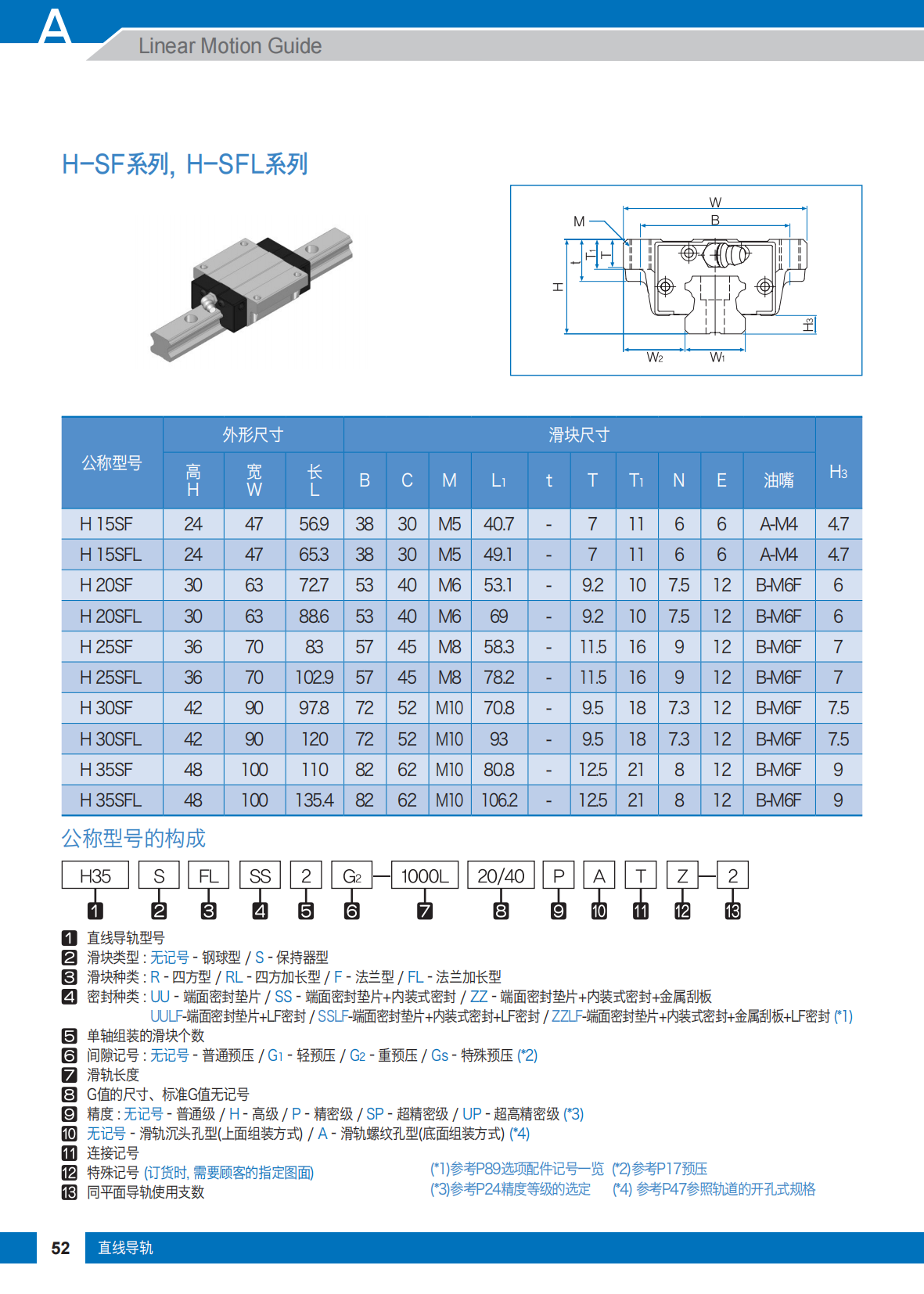 b. 優(yōu)秀的品質(zhì), 高精度, 省力效果。高剛性, 高精度, 實(shí)現(xiàn)長(zhǎng)期穩(wěn)定的行走精度。耐磨性好, 摩擦阻力小, 壽命長(zhǎng)。 D/F正面組合結(jié)構(gòu), 具有自動(dòng)調(diào)心能力, 吸收誤差能力強(qiáng)。 為了設(shè)計(jì)方便, 提供多樣化規(guī)格?;壓突瑝K的互換性高, 組裝與維修容易。