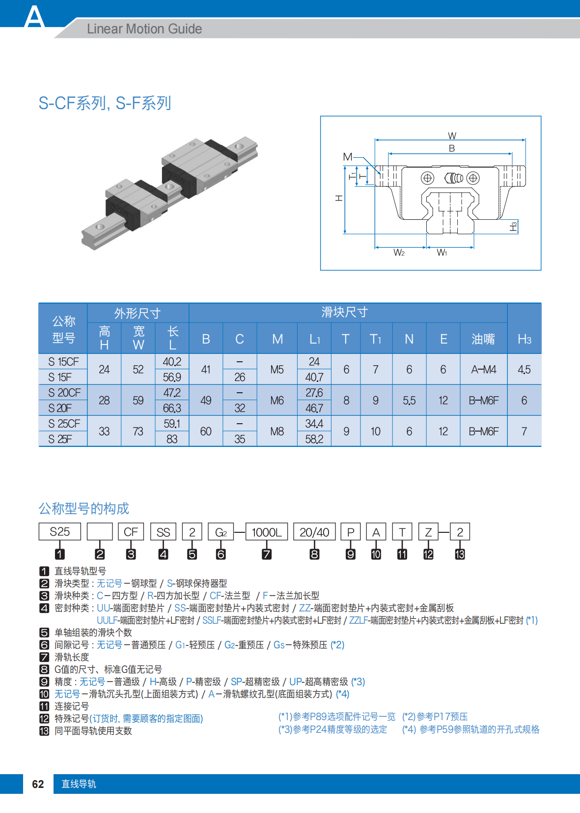 S系列直線導(dǎo)軌是4列圓弧溝槽, 四方向等負載型, 正面組合D/F結(jié)構(gòu)設(shè)計, 具有自動調(diào)心能力。